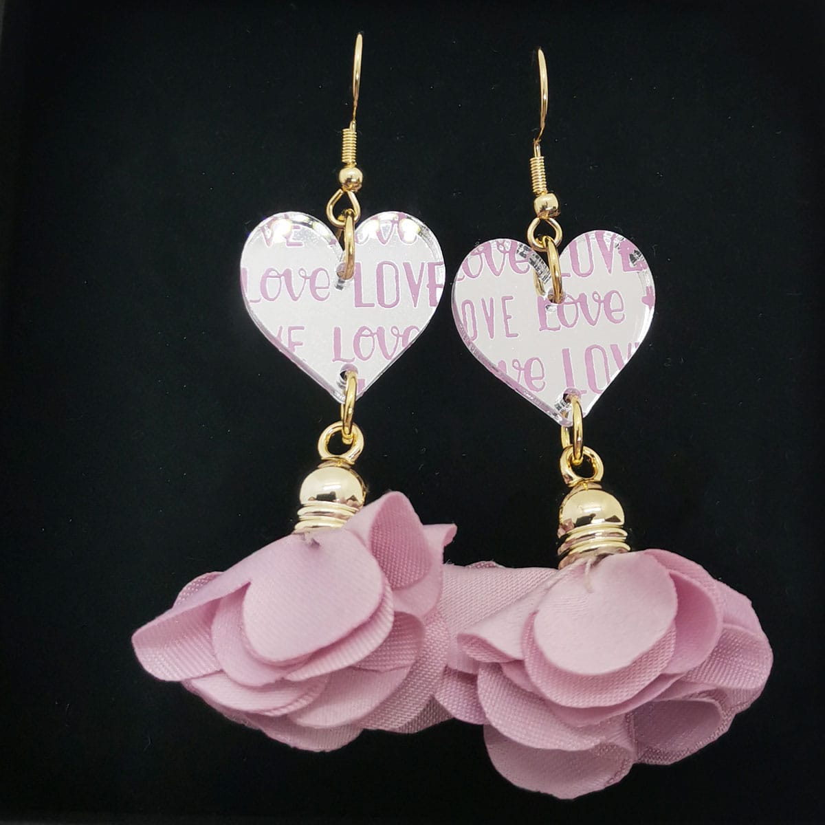 Love sydän on ihanaa peiliakryyliä ja kukka (jota voit muotoilla) on kangasta.